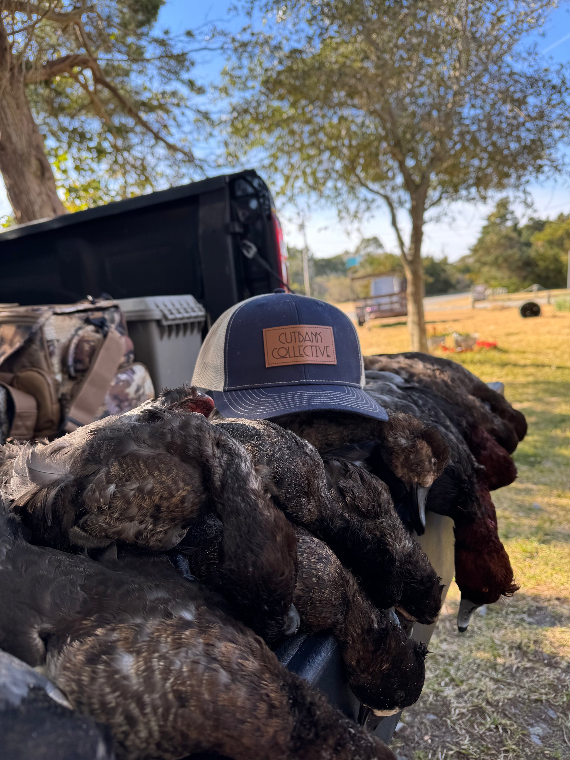 Whether you’re trading the coast for the mountains or just looking for a rugged everyday staple, our Leather Patch Trucker is built for the journey. This hat features a custom-etched leather patch on a classic navy and tan mesh frame, offering a more premium, structured look that stands up to the elements. From boat decks in Carteret County to happy hour on the mountain, it’s designed for those who carry the spirit of the coast wherever they go.